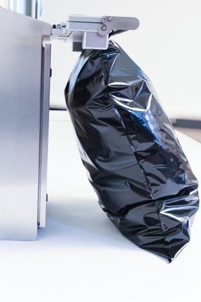 Regular waste on a vessel is being collected in special vacuum bags that allow safe storage of waste in a vacuum. The bags to be used are made of compound films from PE/PA. The ultimate strength and tightness for most kind of waste are guaranteed by the thickness of the film material (160µ), the composition of two different film materials (PE/PA) and a double sealing line.